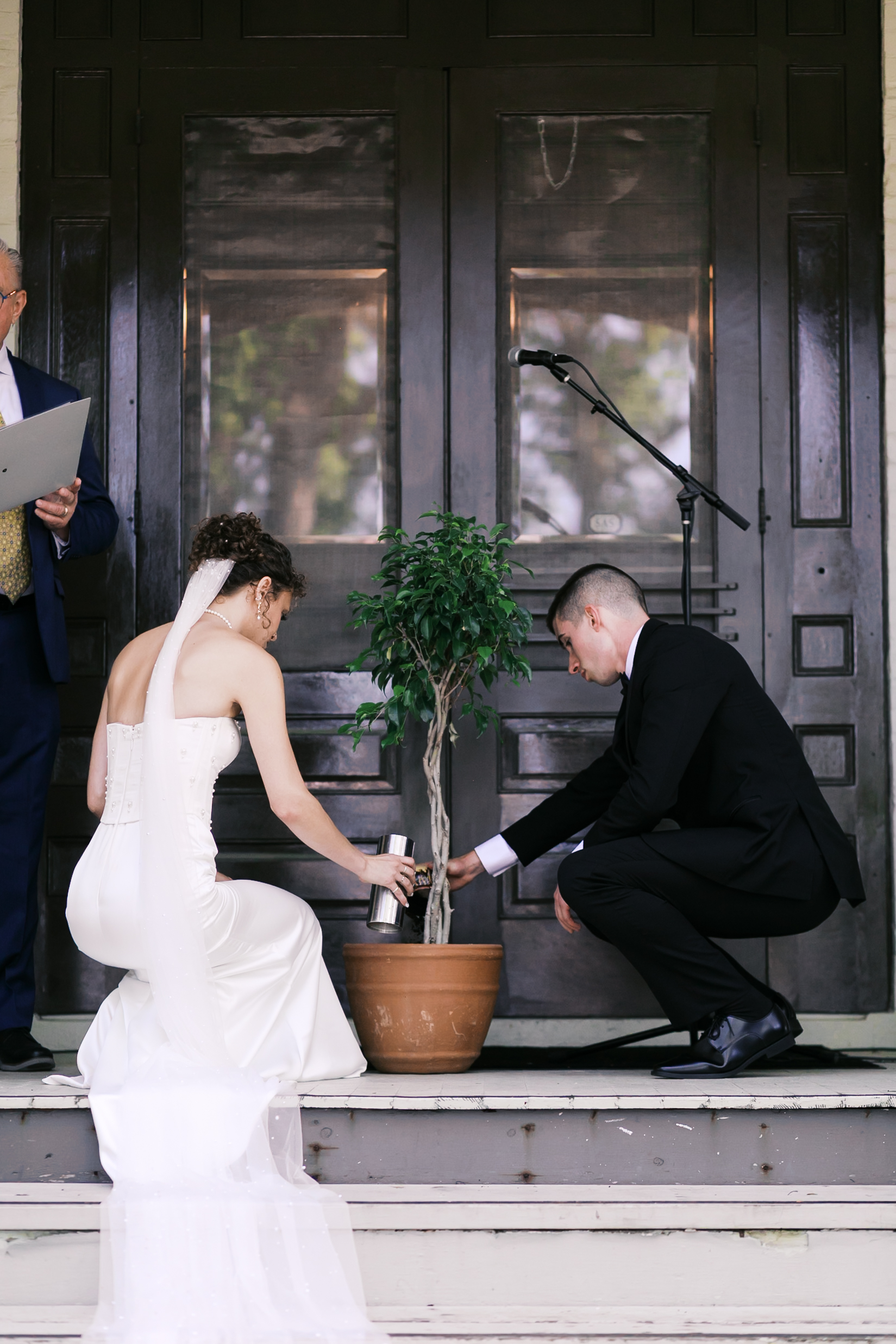 The ceremony itself was intimate and emotional. Kirsten and Cooper shared a tree ceremony, pouring soil and water together, symbolizing the life they’re growing side by side. It was quiet, grounding, and deeply romantic.