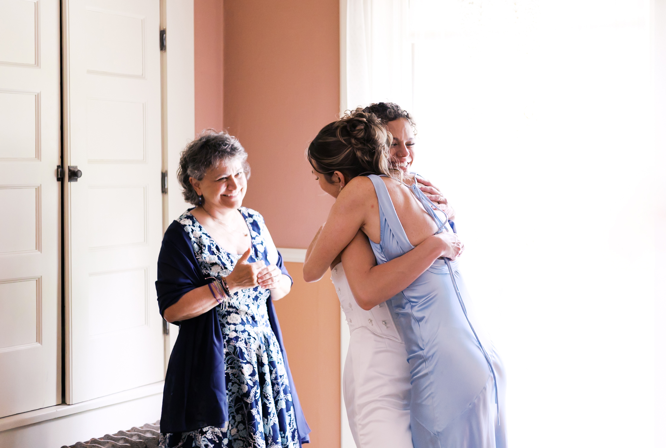 One bridesmaid worked her magic, the zipper slid into place with ease, and the tension disappeared instantly. No changes needed. Just relief, laughter, and a sense that the hardest part was already behind them.