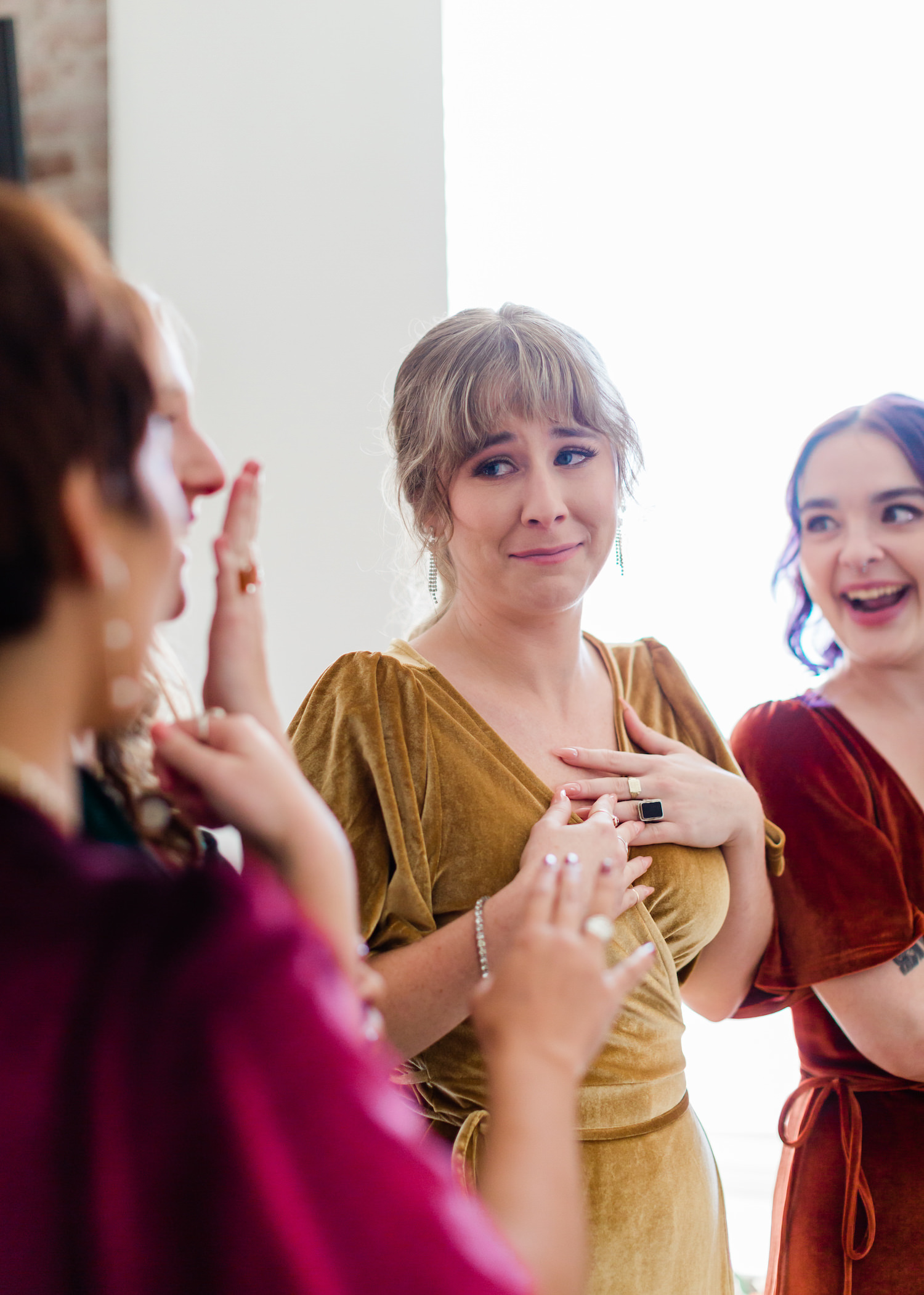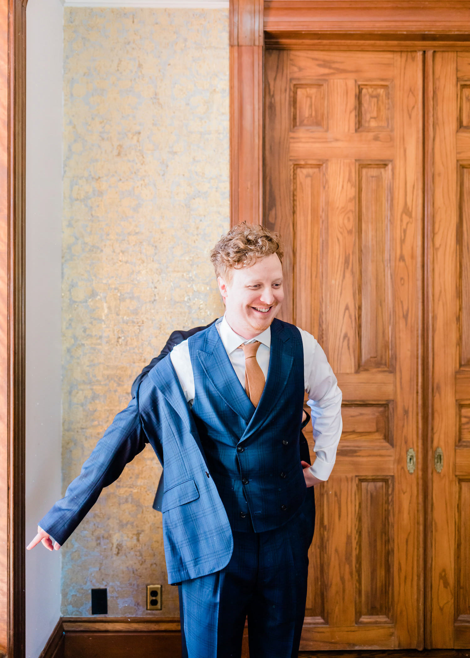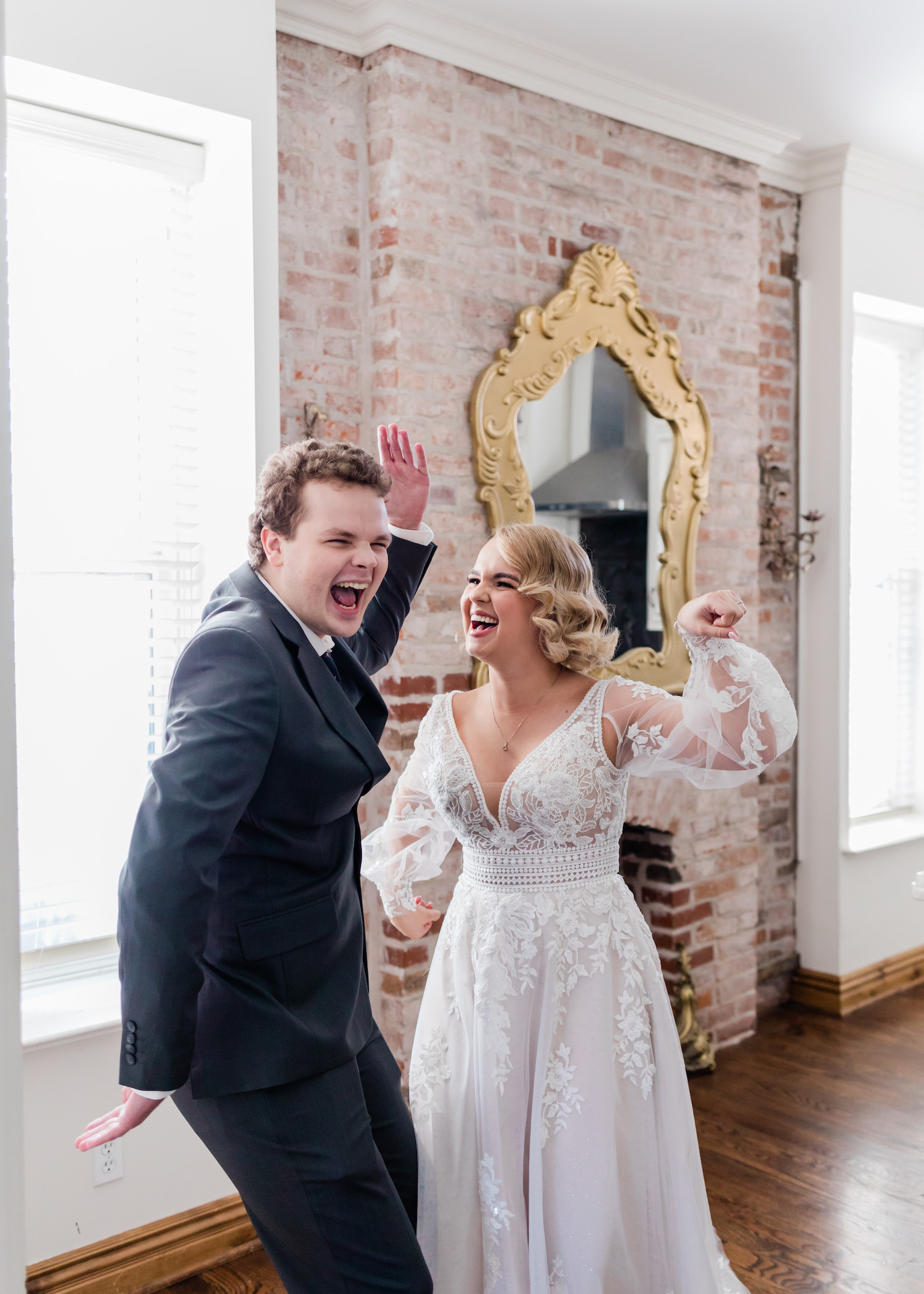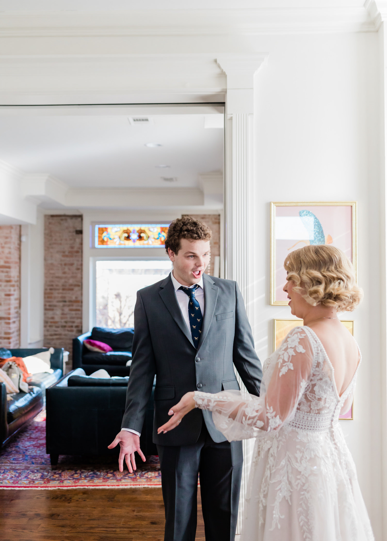 The bride was radiant from the moment she arrived, but the way Hello Lovely worked their magic made her downright jaw-dropping. (When you’re searching for vendors for your downtown Kansas City wedding, you cannot go wrong with Hello Lovely!) I especially loved how effortless and sophisticated Shelby’s hair turned out. And when Shebly slipped into her wedding gown, the entire look become instantly whimsical. Her bridesmaids, grandparents, and brother were truly blown away. They had the most incredible reactions I’ve seen during their first look. While tears were definitely present, the laughter and joy that filled the room was radiant. Moments like this are what make the pre-ceremony time some of my favorites on a wedding day!