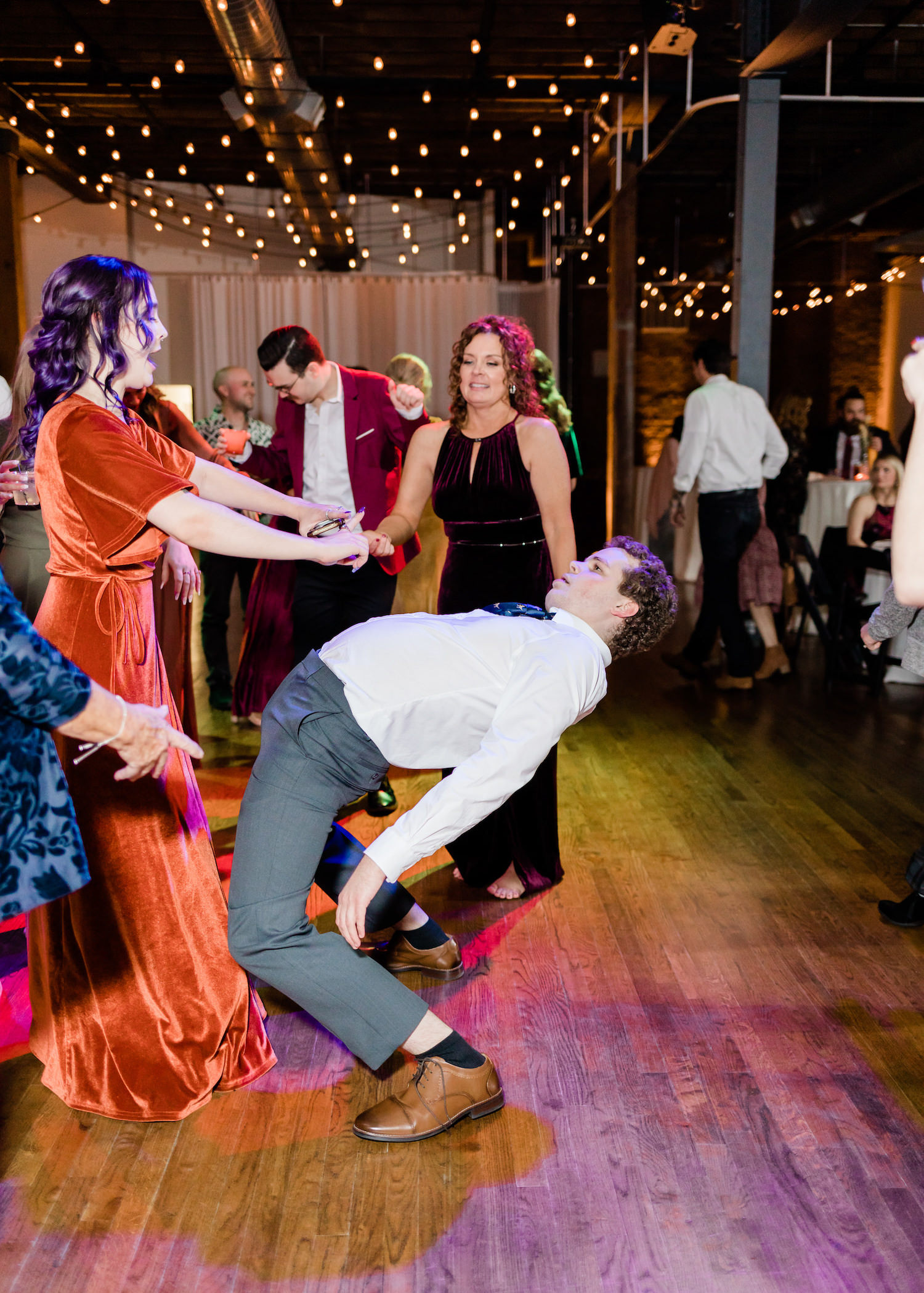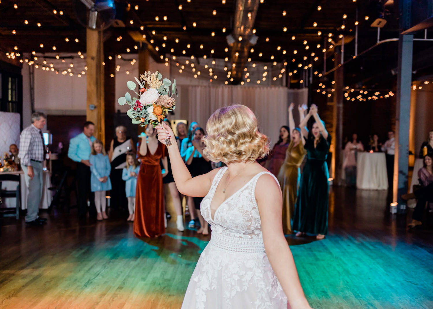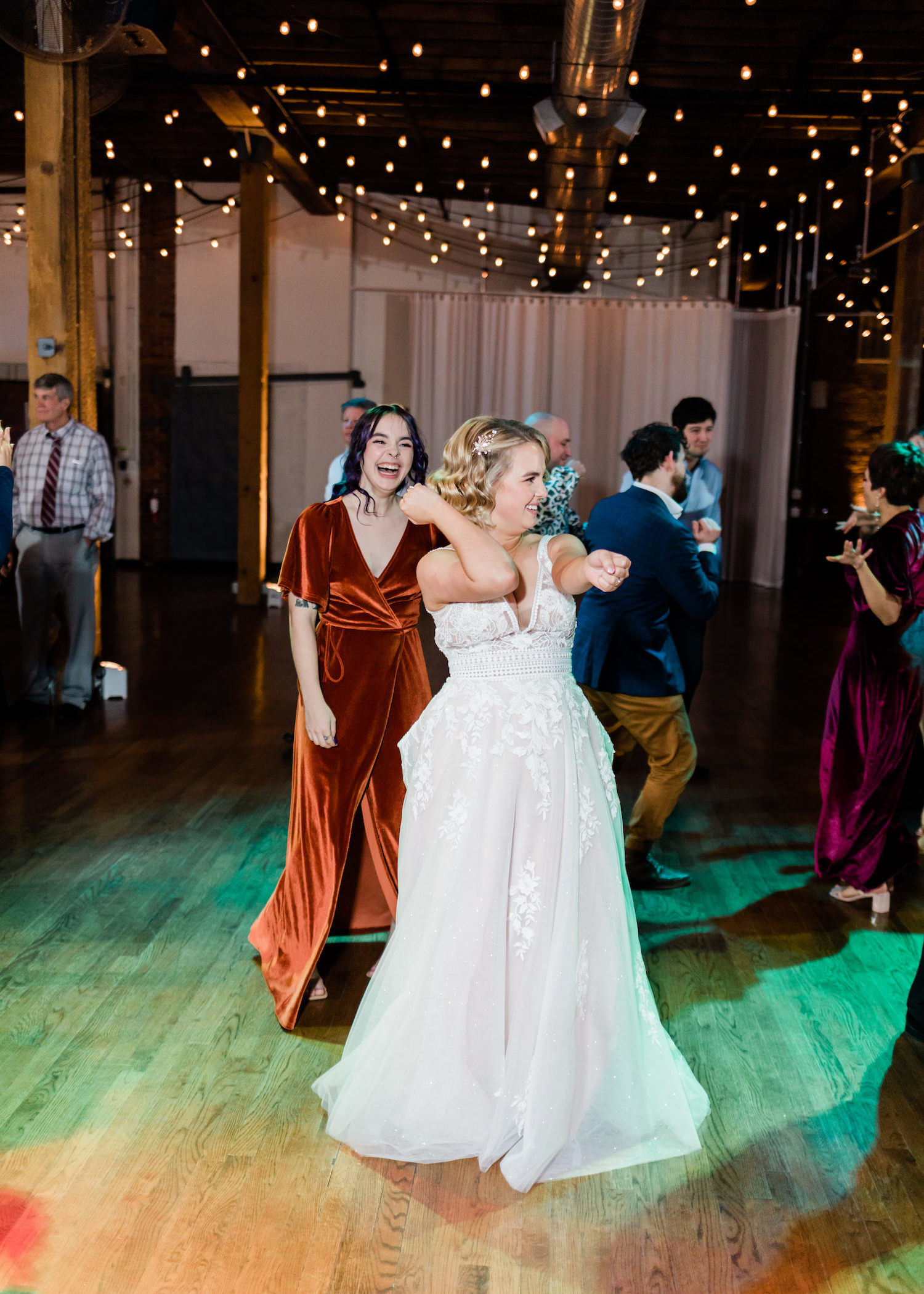 When the guests saw the string lights turn on at The Everly, their jaw draws in awe. This venue is one that dramatically changes as the sun goes down. Whether the light is pouring through the windows, or it’s romantically lit for an evening ceremony, it’s truly one of a kind. And then, once the party kicked into high gear and the guests hit the dance floor, the reception space felt homey and intimate, as everyone piled on the dance floor!