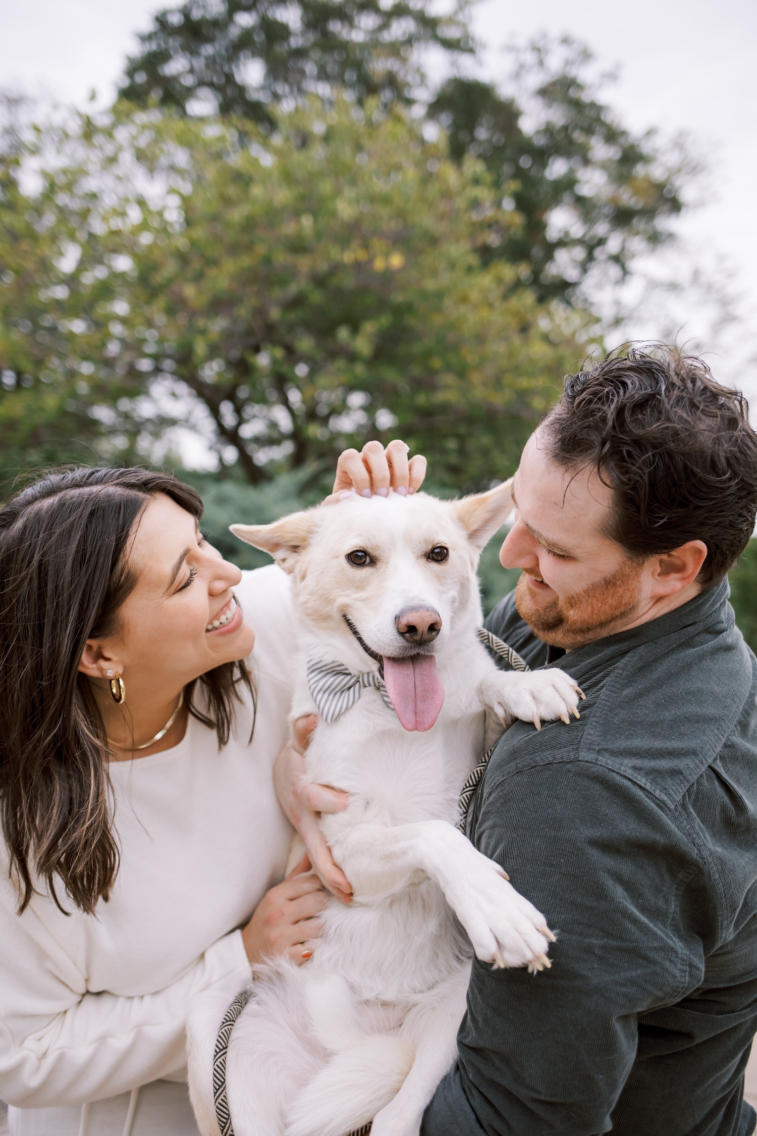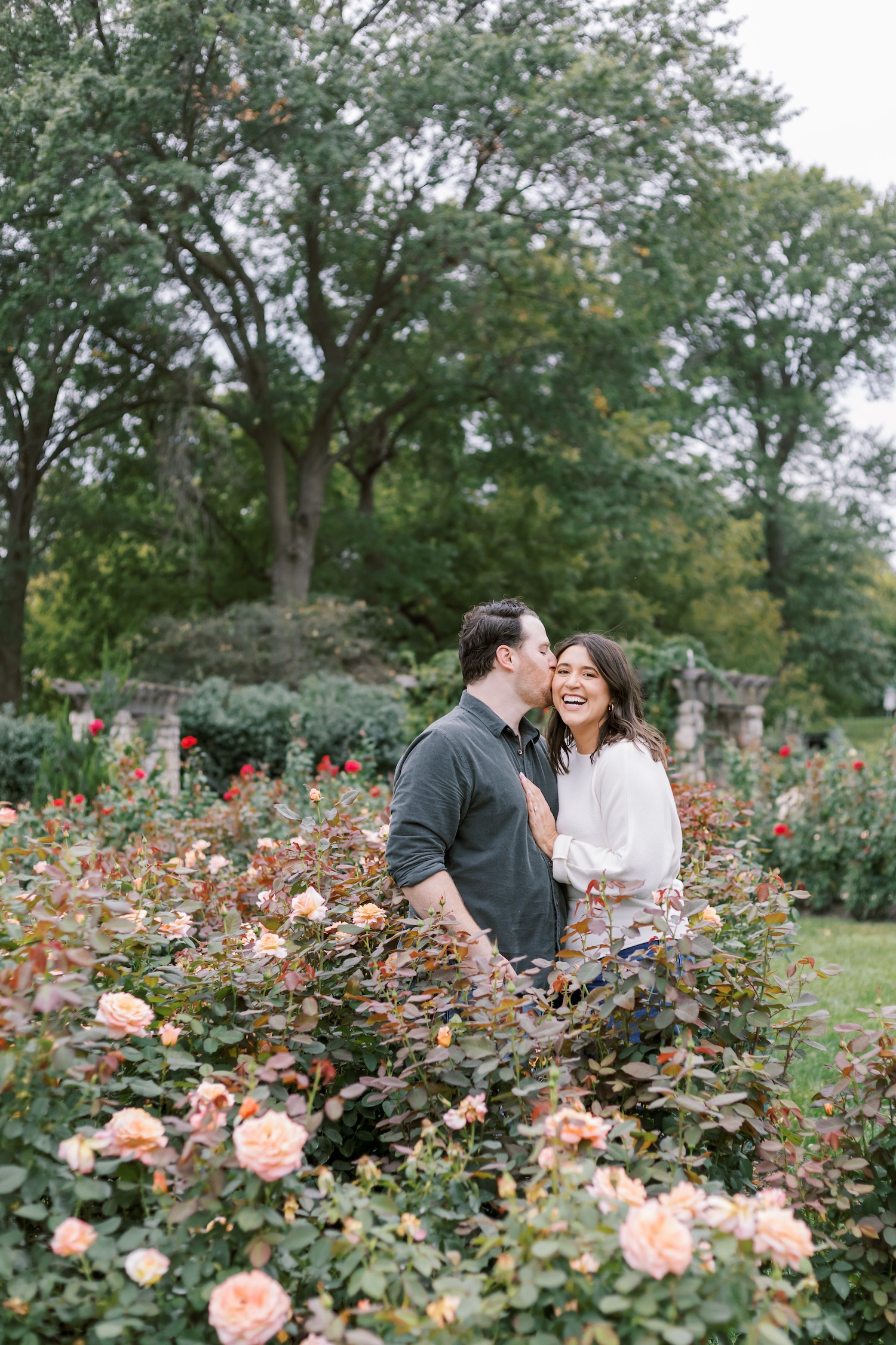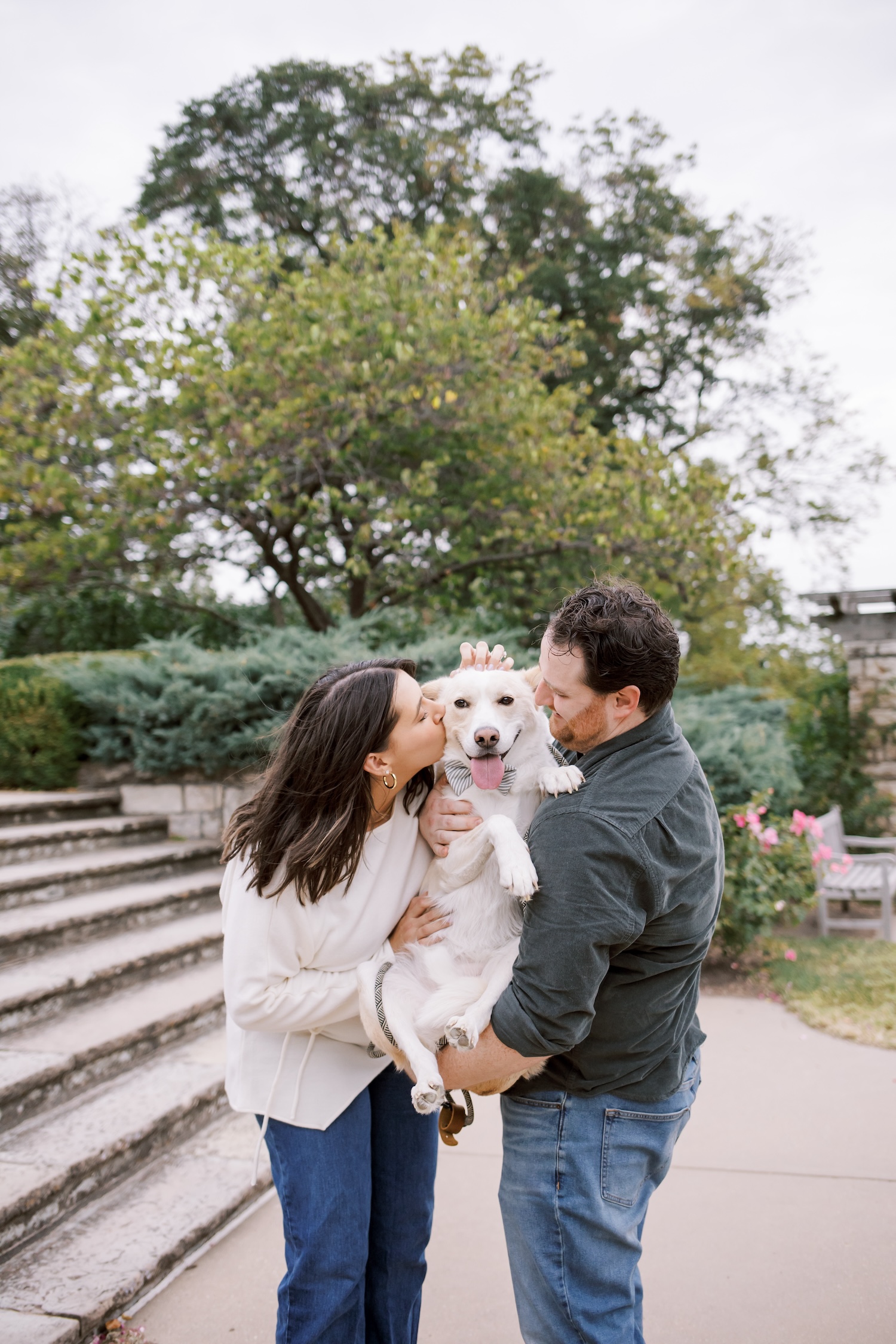 When it came time for Madi and Trevor’s engagement session, we knew Loose Park was the perfect starting point. This was the very spot where Trevor had proposed! Walking through the park again brought back all the emotions of that unforgettable day. The lush greenery and beautiful flowers provided a stunning backdrop as we captured their love in the place where their forever began. Of course, Milo had to make an appearance!