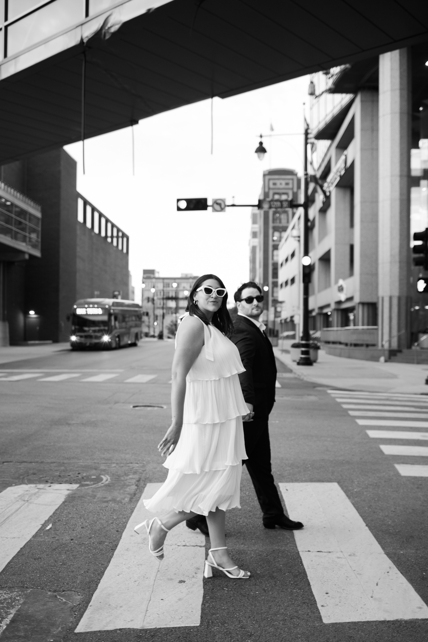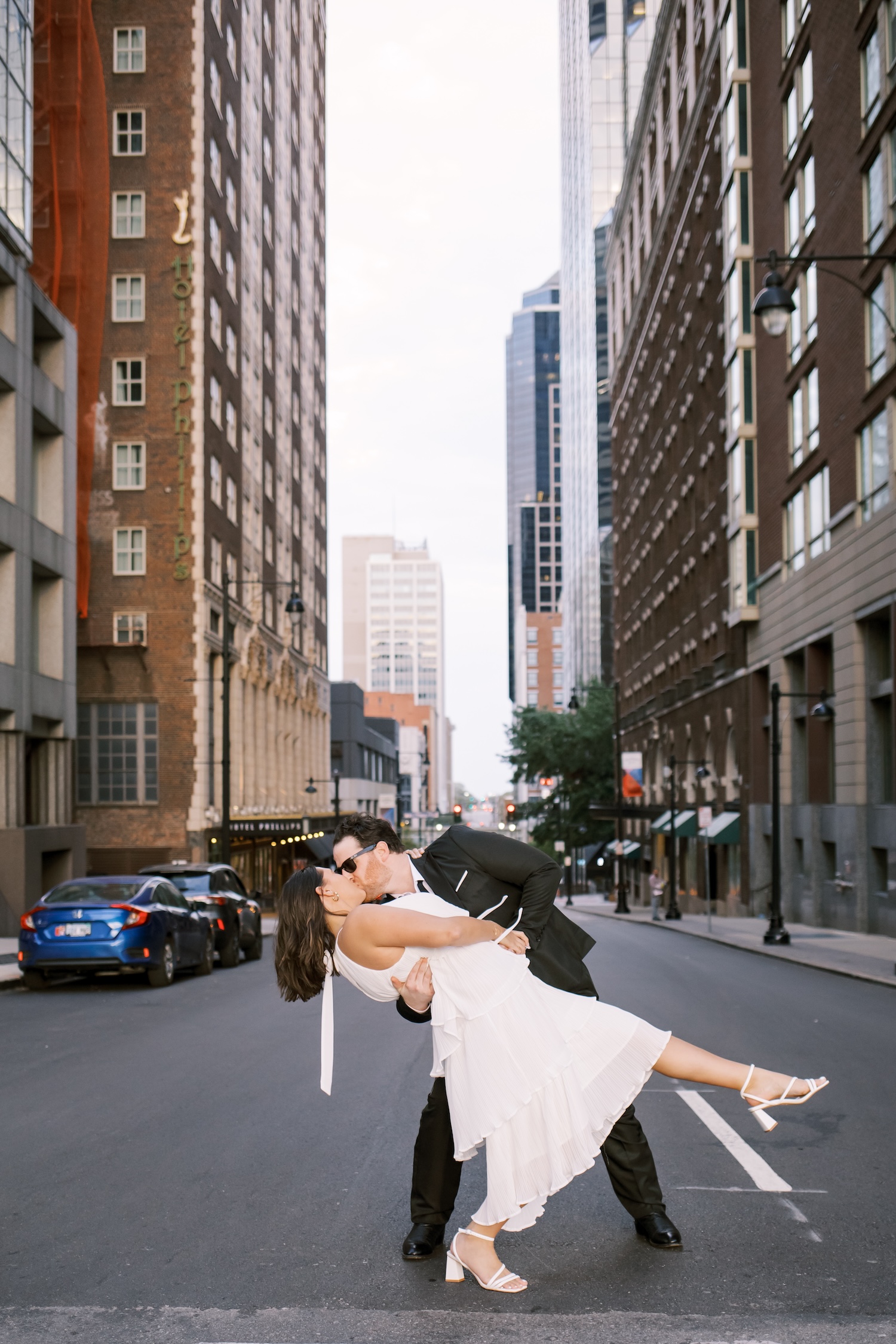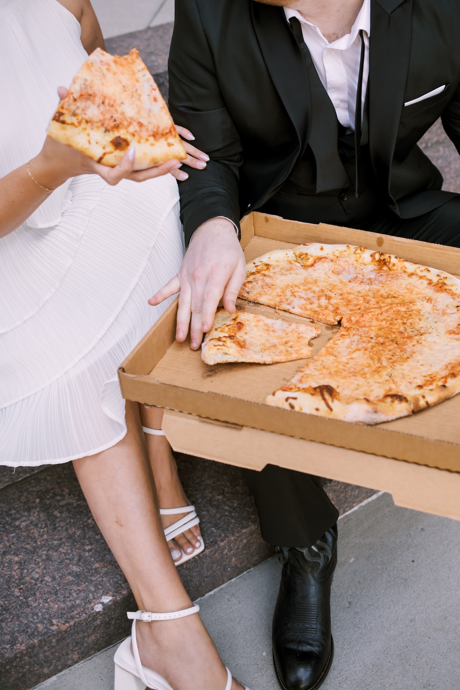 After the sentimental moments in Loose Park, we headed to the heart of downtown Kansas City. This was where we captured Madi and Trevor’s more modern and playful side. Surrounded by the urban energy of the city, we explored some of their favorite spots. One of the highlights? Incorporating pizza into their session! It was the perfect way to capture their fun, laid-back personalities and their love for enjoying life’s simple pleasures together.