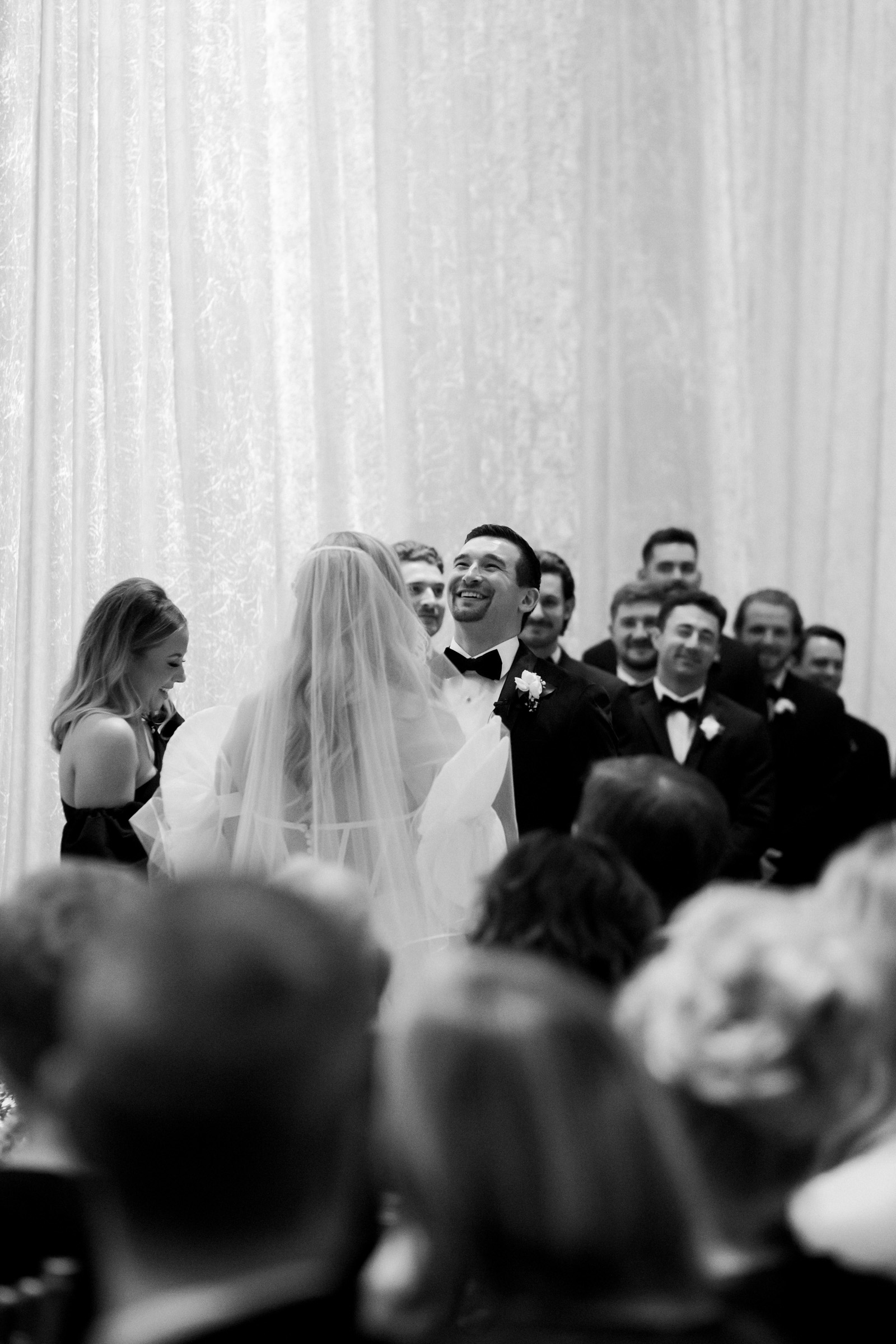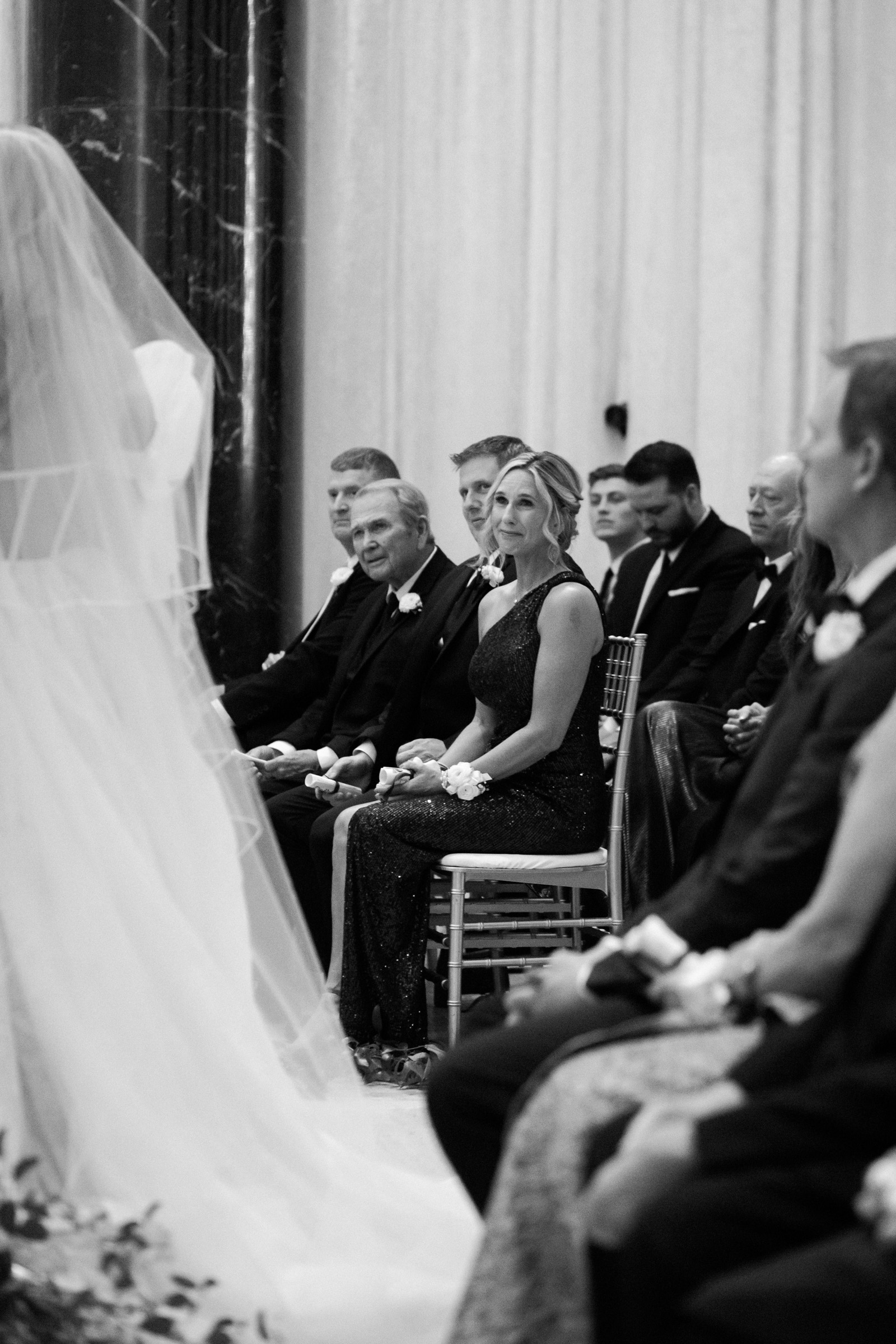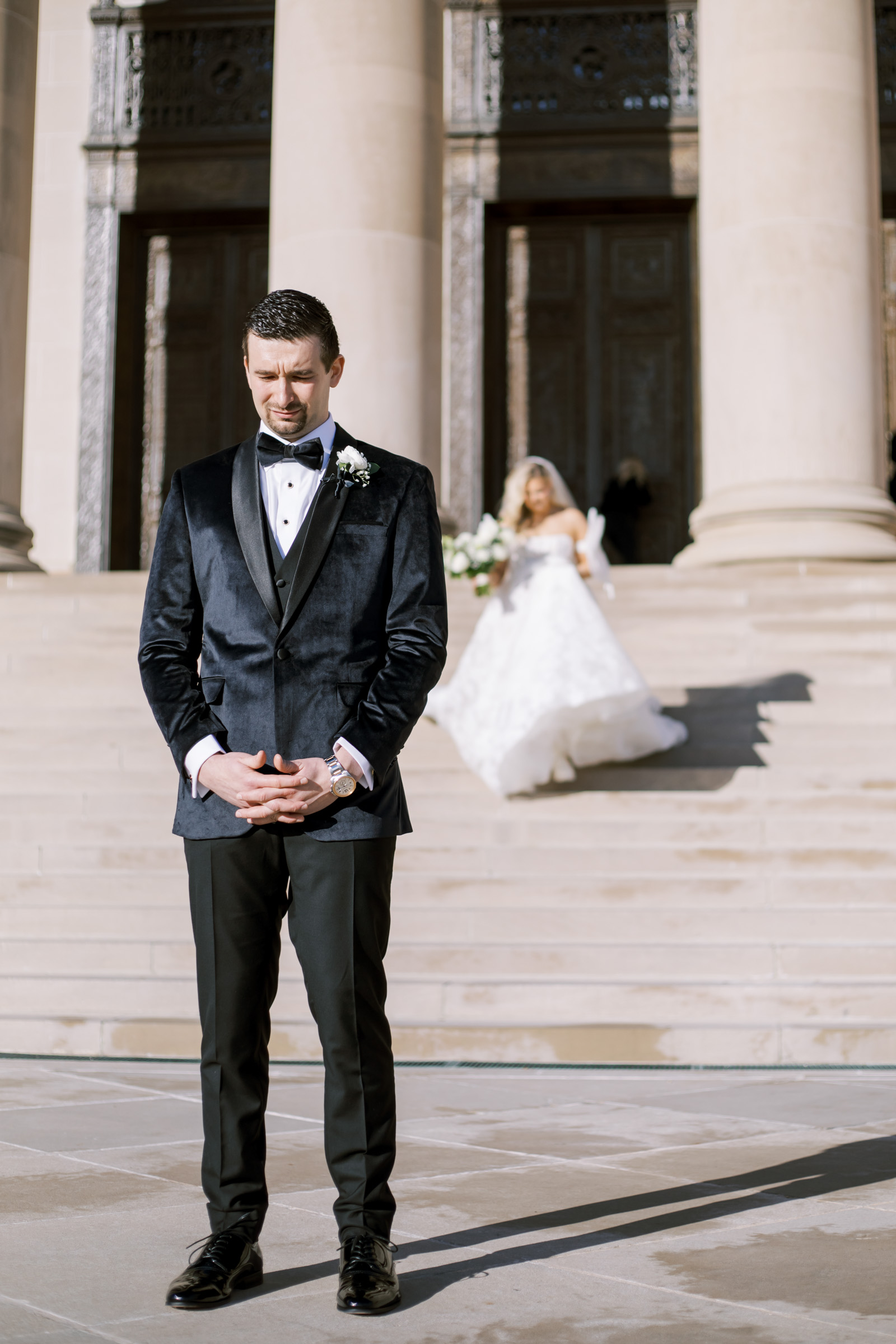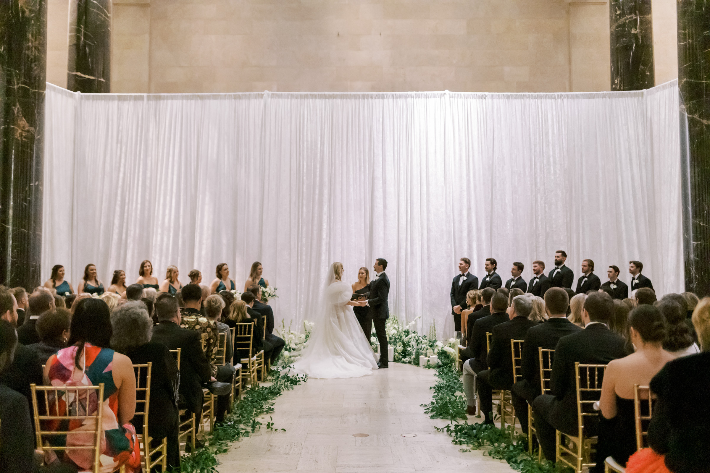 As guests arrived, the echo of their footsteps on marble set the tone for the evening – classic, timeless, and unforgettable. Capturing the play of light across the room as vows were exchanged was an absolute dream; the Nelson-Atkins’ design lends itself to soft, cinematic imagery that feels alive.